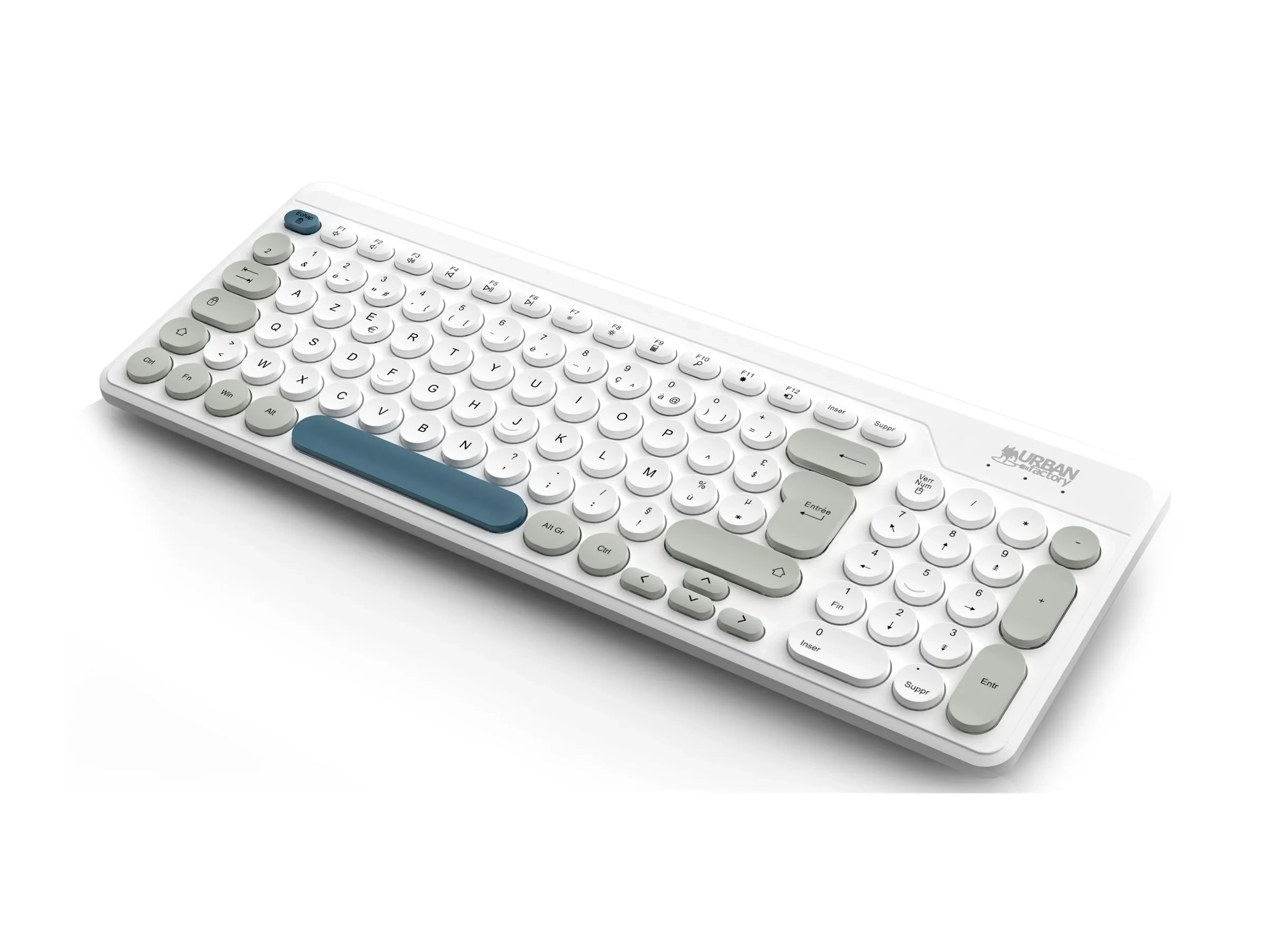 Urban Factory Onlee Color - Clavier - compact - sans fil - 2.4 GHz - AZERTY - Français - bleu, gris, blanc