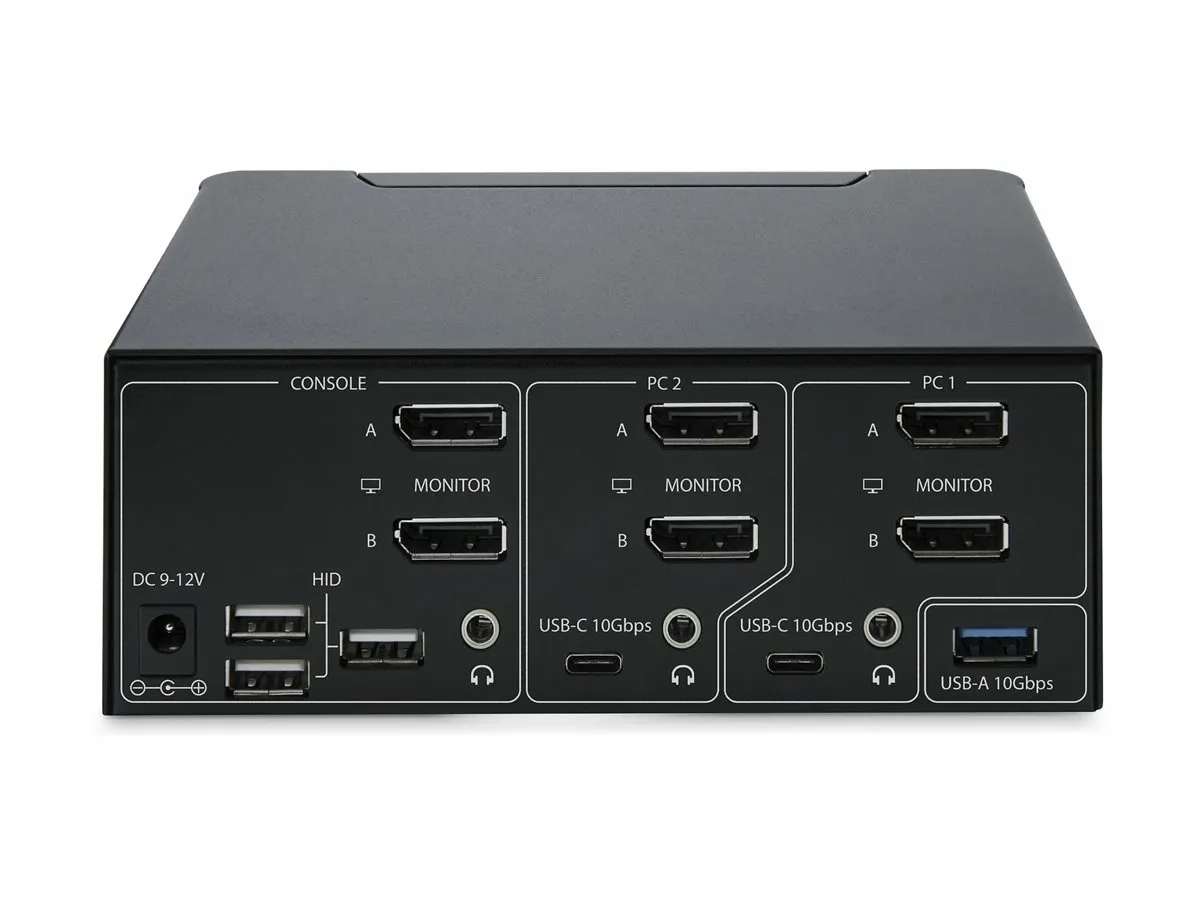 Ce commutateur KVM conforme à la norme TAA prend en charge deux écrans DisplayPort double-8K 60Hz, ce qui le rend idéal pour travailler avec des graphiques ou des vidéos haute résolution. Il dispose également de deux ports hub USB 3.2 Gen 2 (10 Gbit/s) pour un transfert de données rapide, et de quatre ports USB HID pour le clavier, la souris et deux périphériques USB supplémentaires.