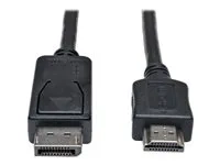 Le câble adaptateur DisplayPort vers HDMI Eaton Tripp Lite Series de Tripp Lite est une solution fiable pour connecter un appareil compatible DisplayPort à un écran HDMI. Ce câble de 4,6 m (15 ft) offre la flexibilité de placer vos appareils exactement là où ils sont nécessaires, ce qui le rend adapté aux installations de bureau et aux systèmes de divertissement à domicile. Il est conforme à la norme HDCP, ce qui garantit une transmission sécurisée des contenus haute définition. La conception durable comprend une gaine en PVC, une décharge de traction et des connecteurs plaqués nickel, qui s'associent pour fournir une connexion fiable qui résiste à l'épreuve du temps. Que ce soit pour des présentations professionnelles, des jeux ou la diffusion en continu, ce câble adaptateur offre à la fois qualité et commodité.