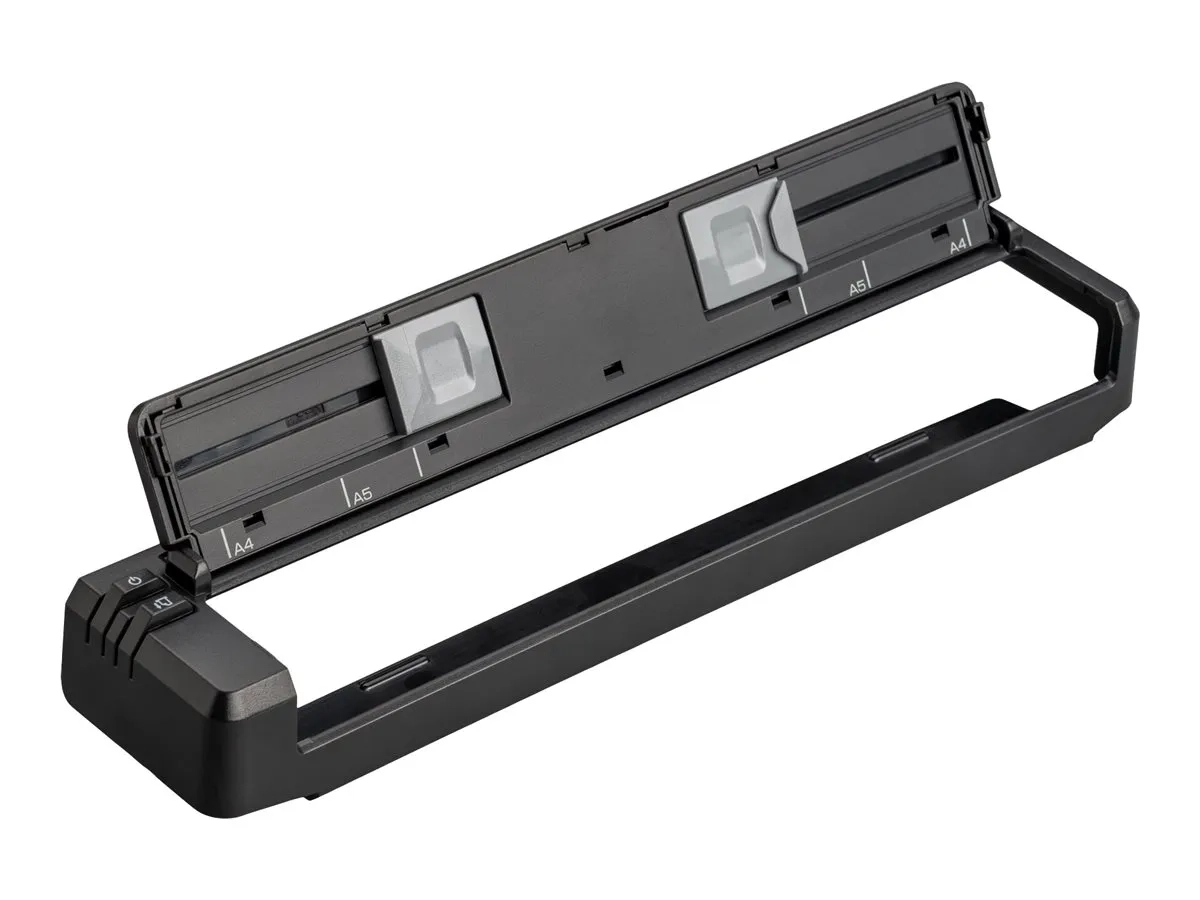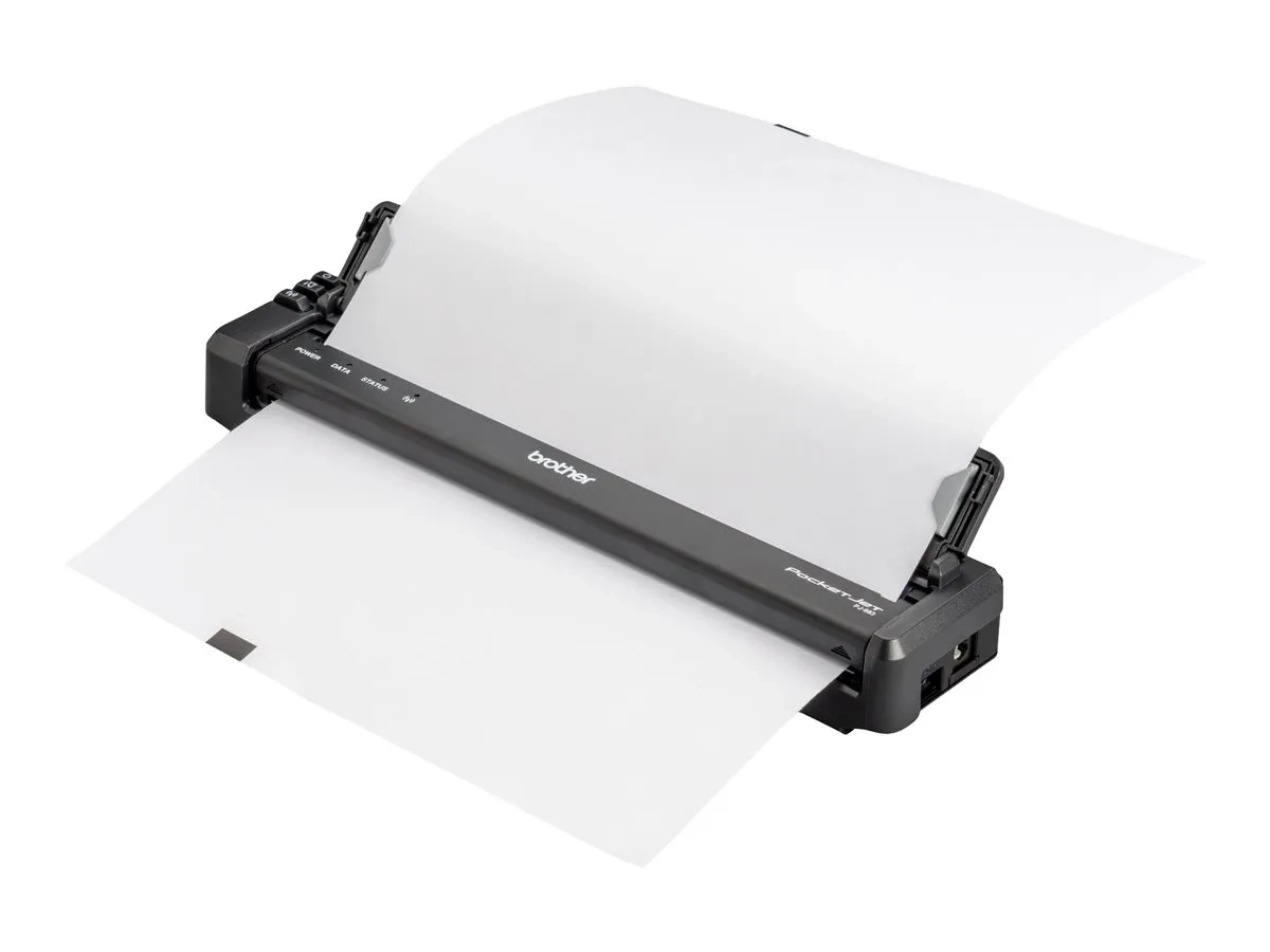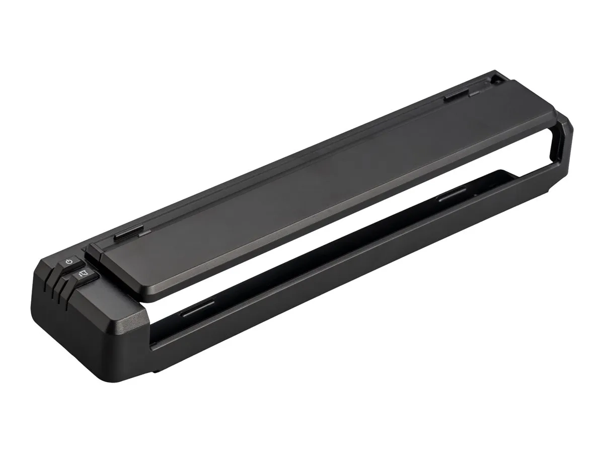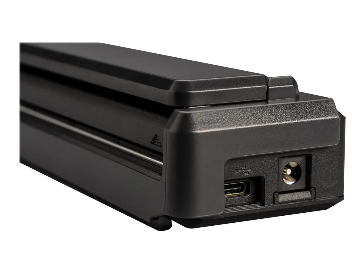 Ce guide papier se clipse facilement sur votre imprimante PocketJet pour faciliter l'alimentation en feuilles individuelles. La partie supérieure se replie pour révéler les guides de largeur réglable qui s'adaptent aux formats de papier ou d'étiquettes souhaités et permettent une alimentation et une impression droites. Rabattez la partie supérieure pour faciliter la manipulation, le transport et le stockage. La conception de l'imprimante vous permet d'accéder pleinement aux ports USB et d'alimentation situés sur le côté de l'imprimante, ainsi qu'aux boutons d'alimentation, d'alimentation du papier et aux boutons radio situés sur le dessus de l'imprimante.