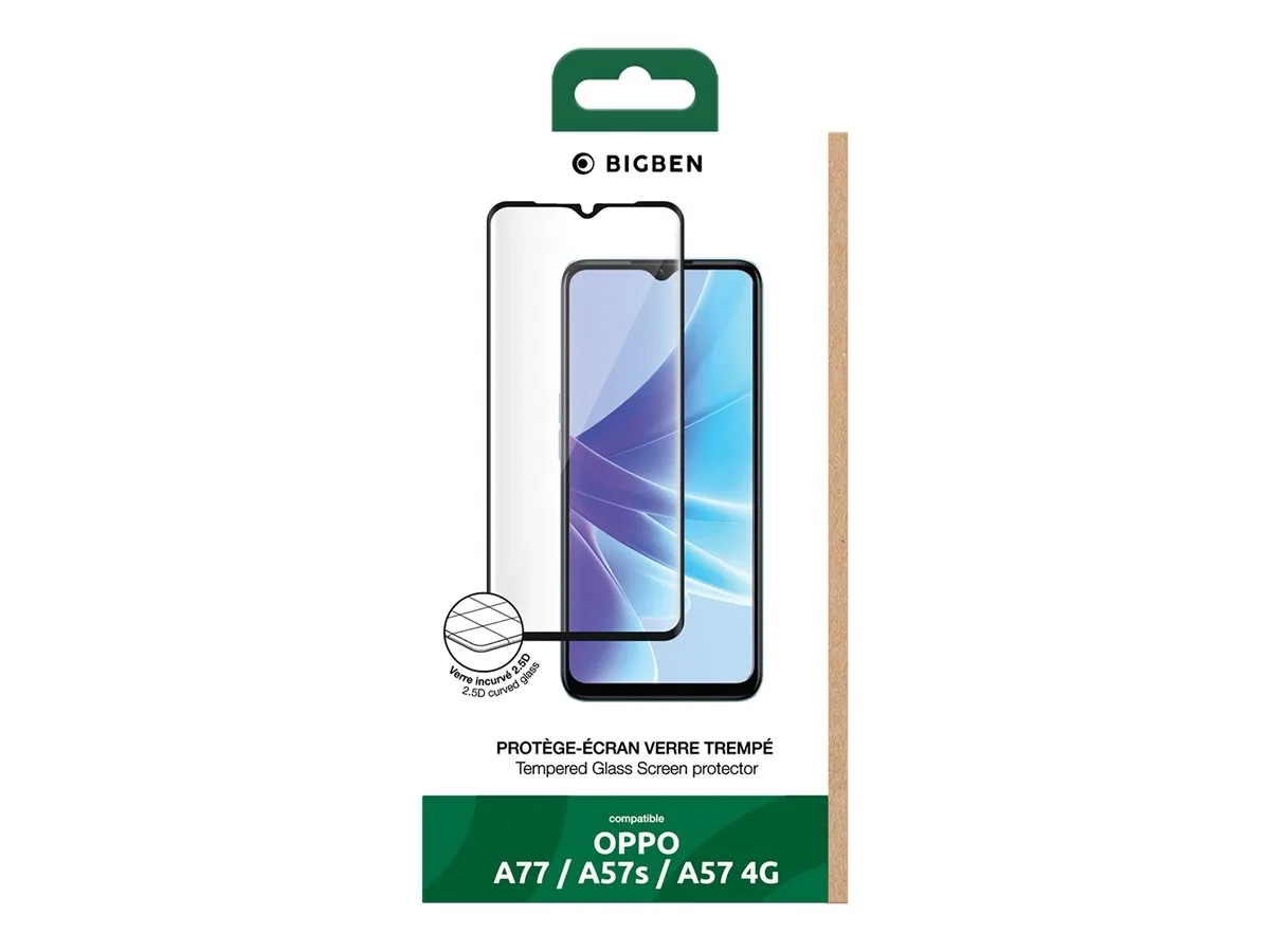 BIGBEN Connected - Protection d'écran pour téléphone portable - 2.5D - verre - couleur de cadre noir - pour OPPO A57, A57s, A77