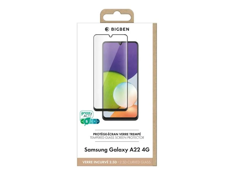 BIGBEN Connected - Protection d'écran pour téléphone portable - 2.5D - verre - couleur de cadre noir - pour Samsung Galaxy A22
