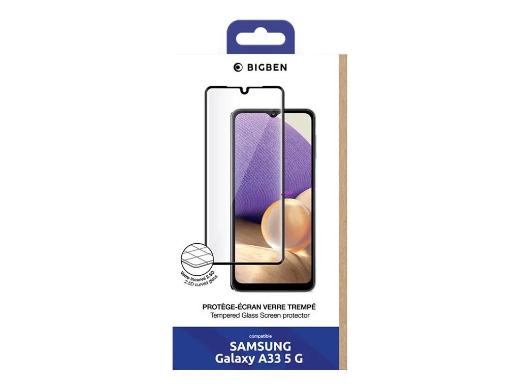 BIGBEN Connected - Protection d'écran pour téléphone portable - 2.5D - verre - couleur de cadre noir - pour Samsung Galaxy A33 5G