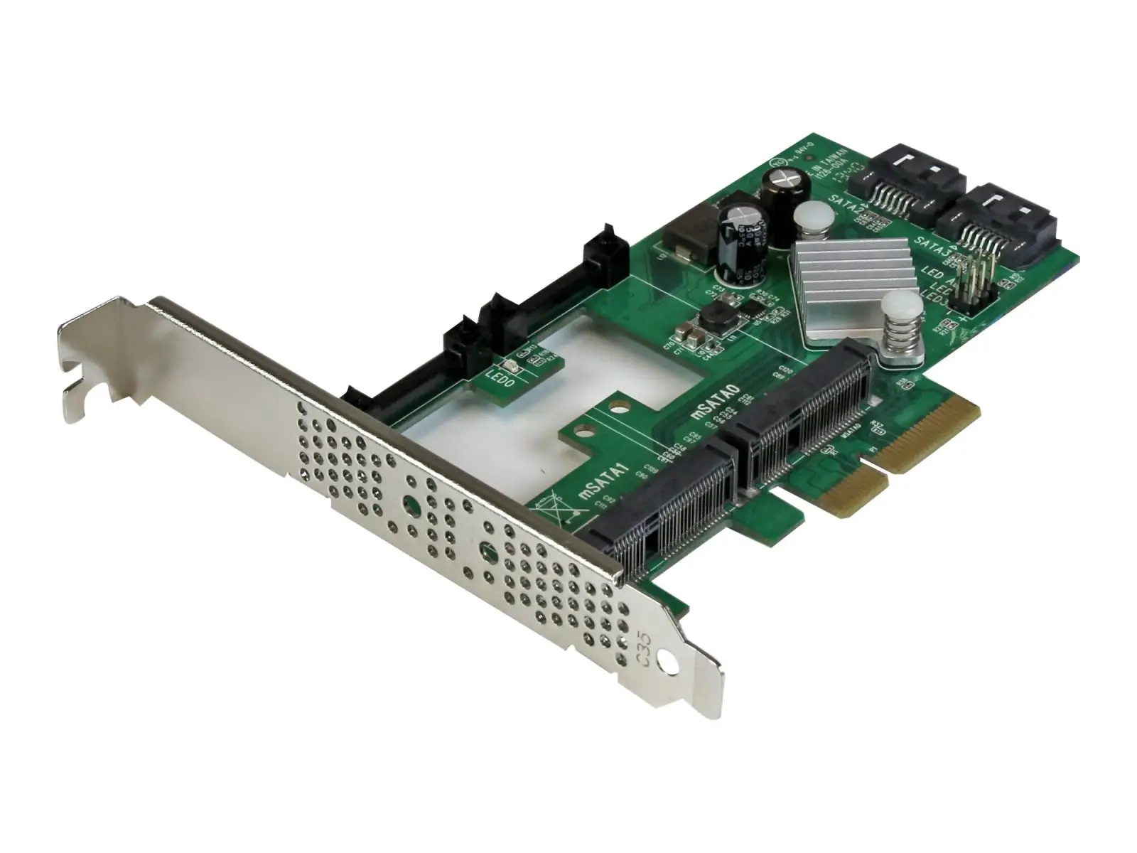 La carte SATA PCI Express PEXMSATA3422 vous permet d'améliorer la vitesse globale et la capacité de stockage de votre ordinateur en vous offrant plusieurs connexions SATA 6 Gb/s, qui permettent de brancher des disques SSD (lecteurs à état solide) haute performance et des disques durs à une matrice HyperDuo. Vous pouvez maintenant ajouter facilement deux slots mSATA et deux ports SATA III à votre ordinateur par le biais d'un seul slot PCI-E x4.