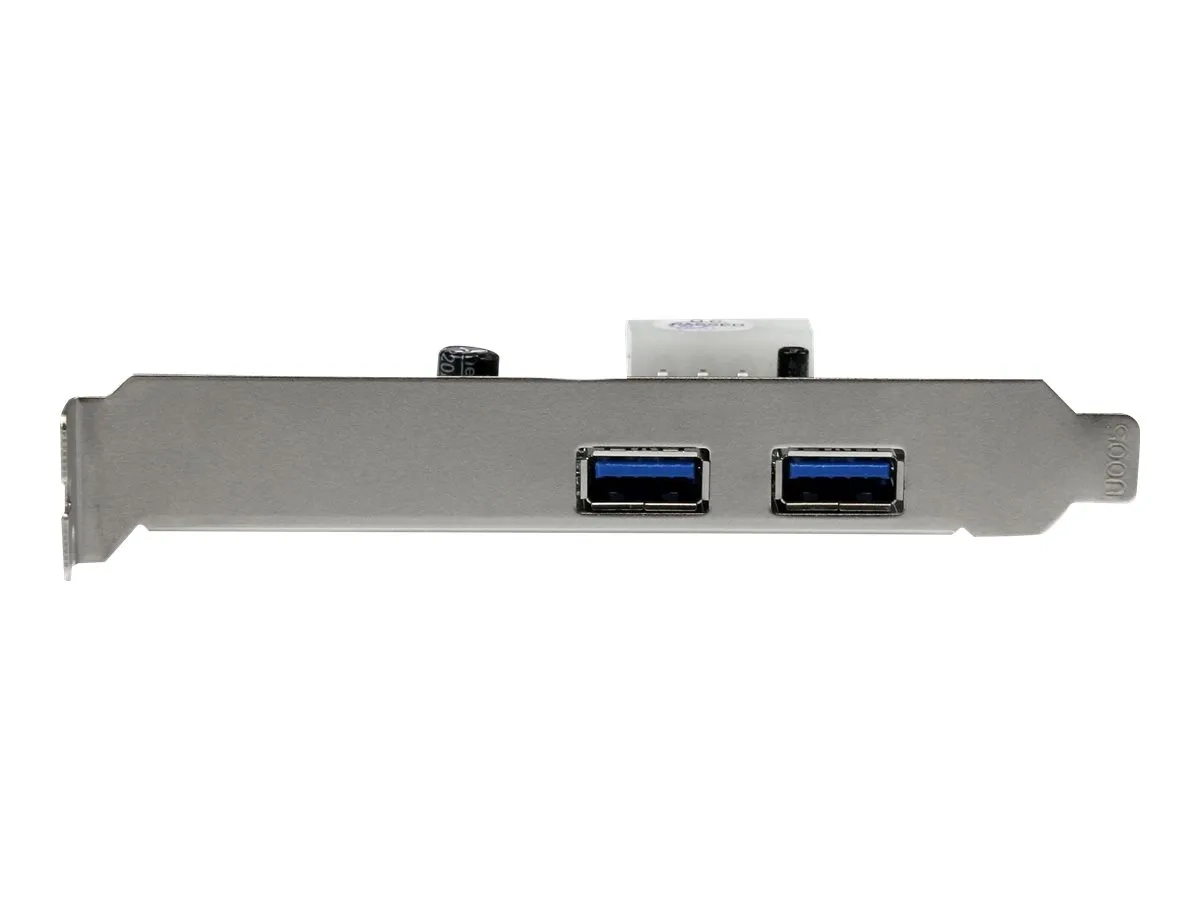 La carte PCI Express USB 3.0 2 ports PEXUSB3S25 vous permet d'ajouter deux ports USB 3.0 à tout système informatique compatible PCI Express, avec un connecteur d'alimentation LP4 optionnel à brancher sur l'alimentation de votre système afin d'obtenir jusqu'à 900 mA par port pour les périphériques alimentés par bus USB 3.0 (500 mA pour l'USB 2.0).