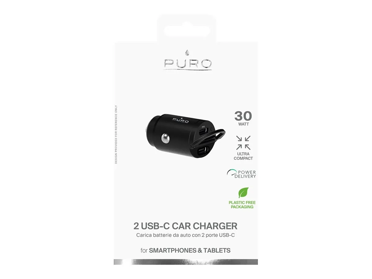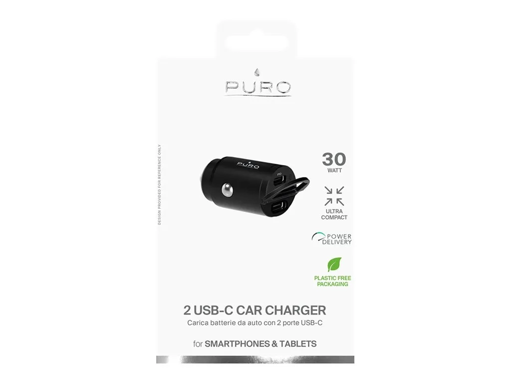 Puro - Adaptateur d'alimentation pour voiture - 30 Watt - 3 A - PD - 2 connecteurs de sortie (2 x USB-C) - noir