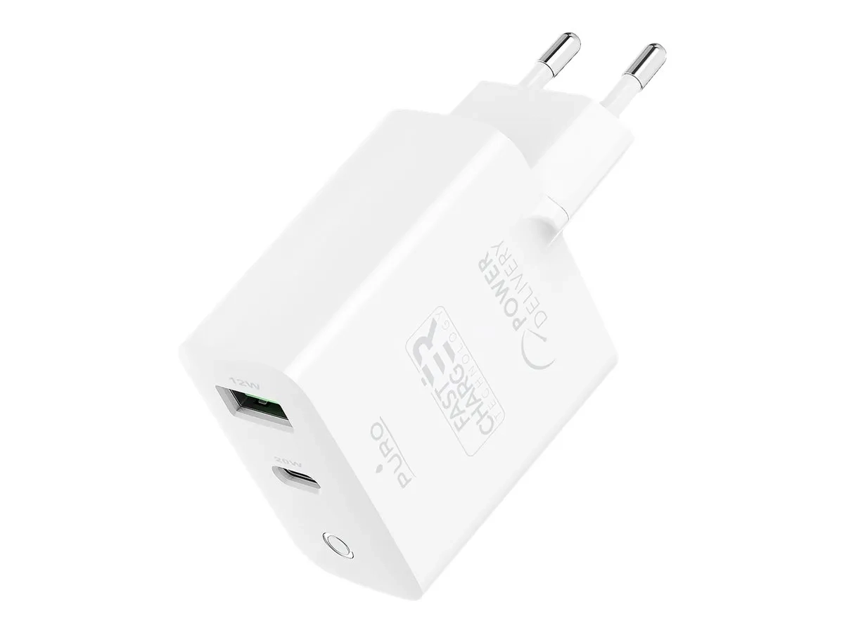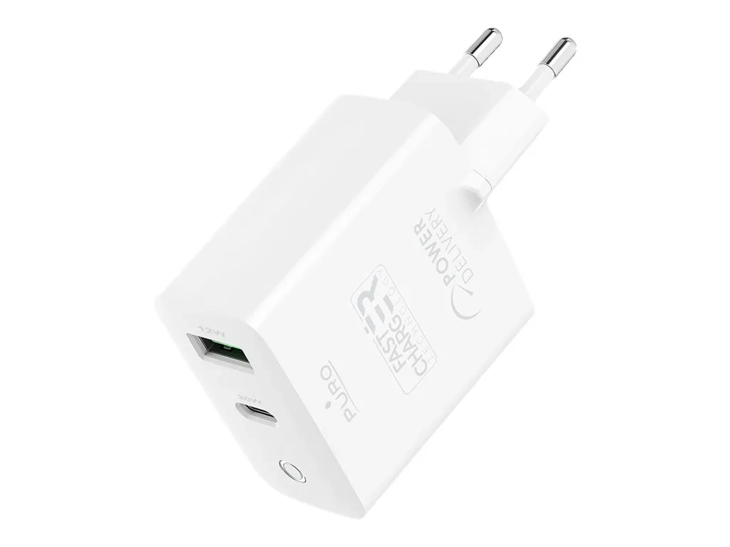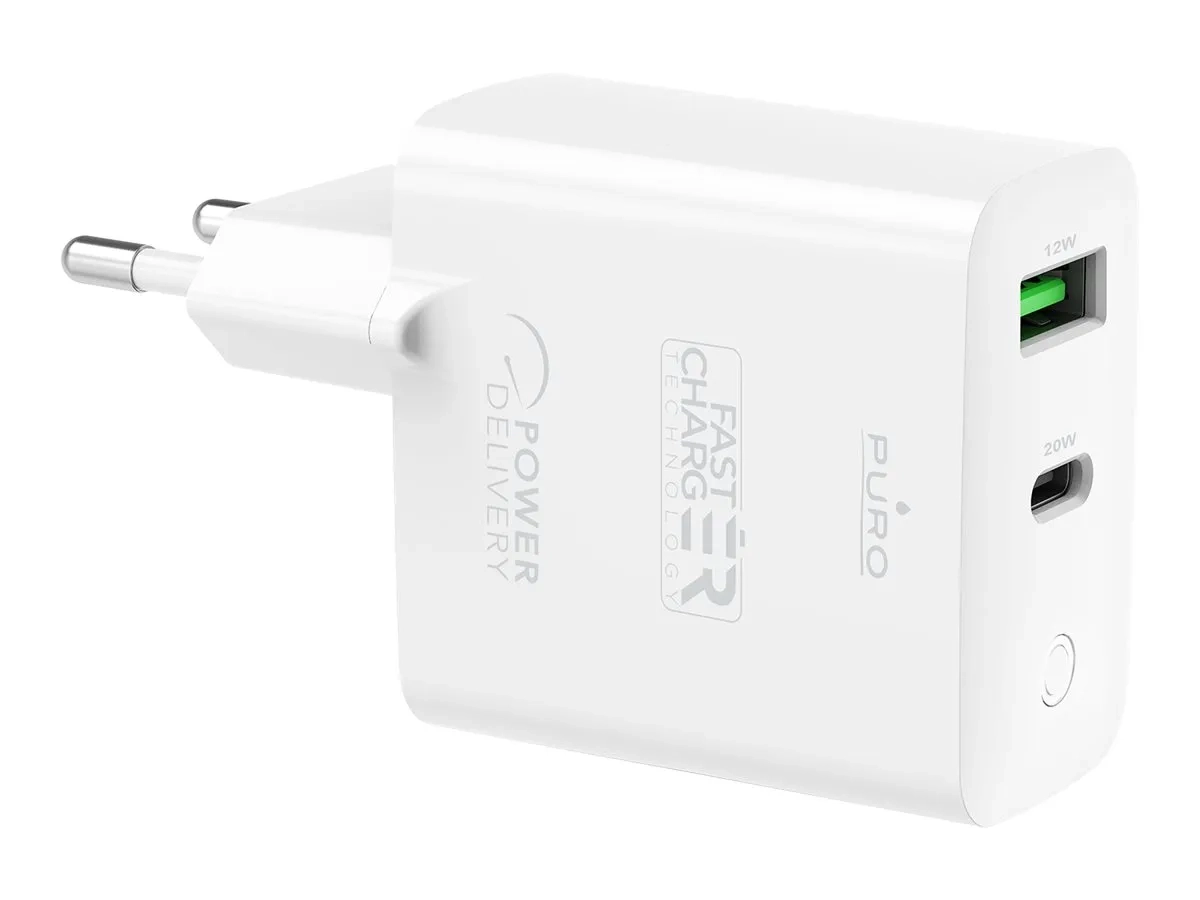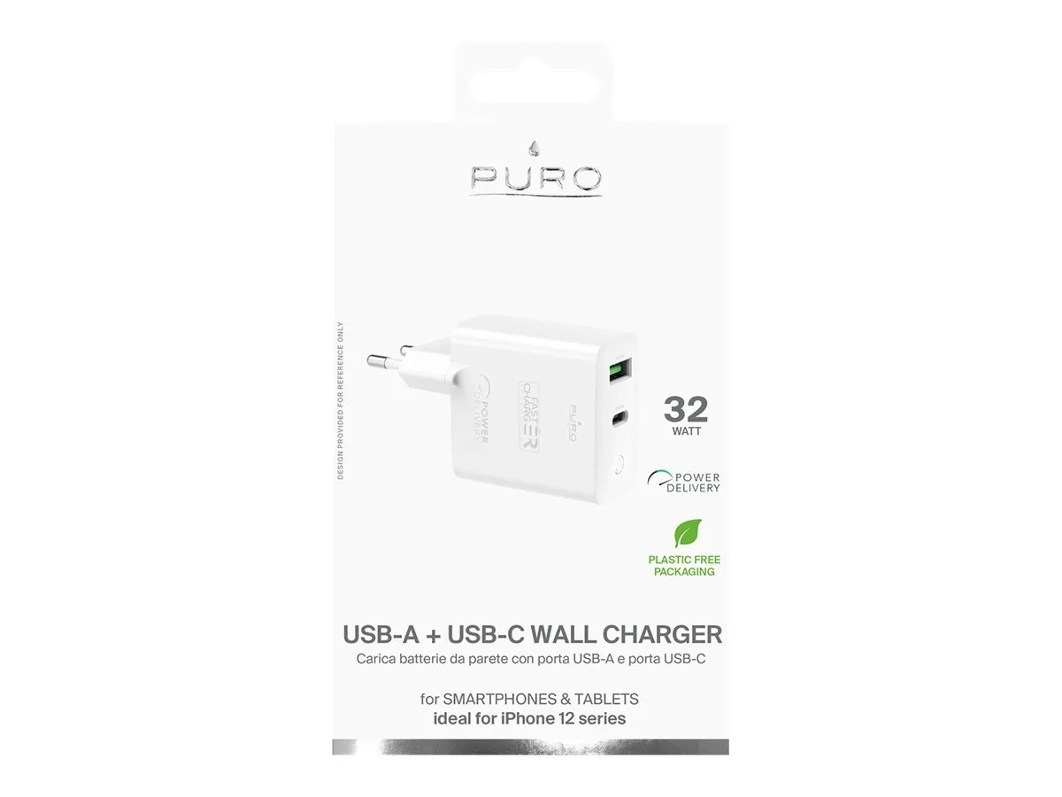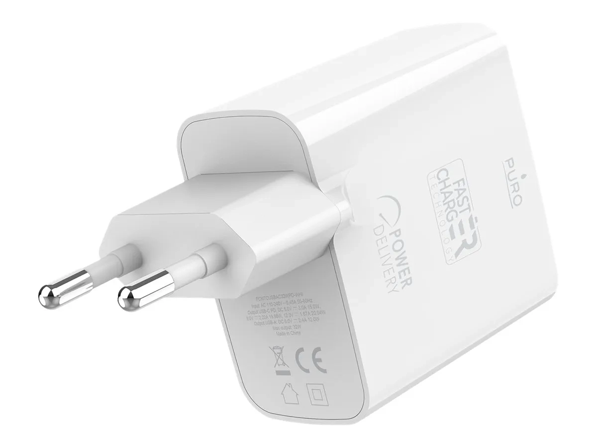 Puro - Adaptateur secteur - 32 Watt - 3 A - Fast Charge, PD - 2 connecteurs de sortie (USB-C, USB) - blanc