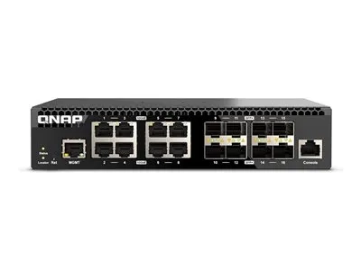 Le QSW-M3216R-8S8T de QNAP est conçu pour répondre aux exigences des environnements réseau modernes. Proposant une combinaison de 16 ports SFP+ et RJ-45, cet appareil offre une connectivité LAN 10Gbit polyvalente, adaptée à une variété d'appareils et de configurations réseau. Son impressionnante capacité de commutation de 320 Gbps et son débit non bloquant de 160 Gbps garantissent une circulation efficace des données, ce qui en fait une solution adaptée aux entreprises exigeant des performances réseau robustes.