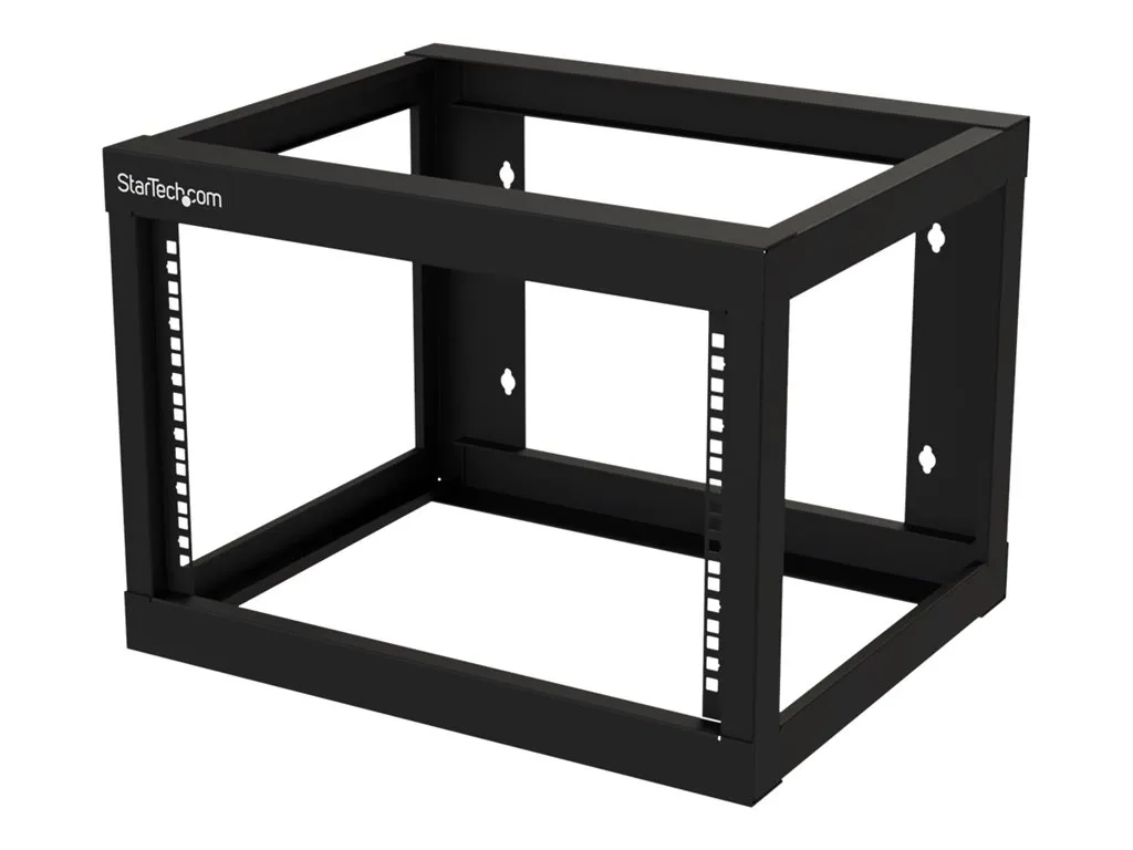 Le rack mural à cadre ouvert a une profondeur de 18 po (45,7 cm), il est donc parfait pour les petits espaces. Elle est expédiée entièrement assemblée et comporte des trous de montage espacés de 16 po, ce qui permet de l'installer sur presque n'importe quel mur, en se basant sur l'espacement courant des montants d'ossature murale.