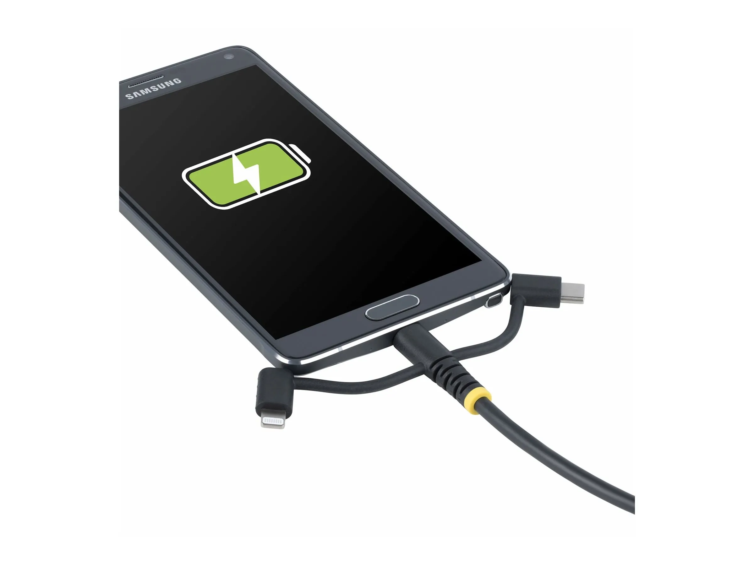 Gardez ce câble USB vers Micro-USB, USB-C ou Lightning à portée de main et minimisez le besoin de transporter plusieurs câbles de chargement. Le cordon de charge 3-en-1 facilite le passage entre différents appareils portables. Le câble peut charger un appareil à la fois.