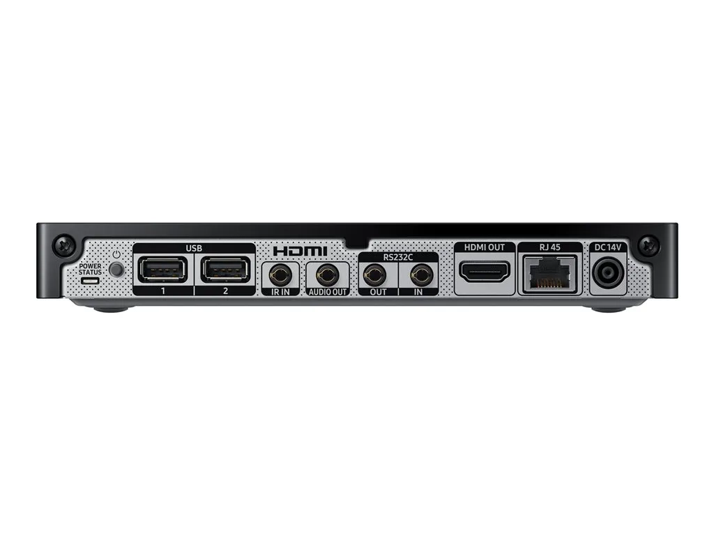 La Signage Player Box UHD de Samsung est conçue pour produire des contenus de haute qualité tout en minimisant les contraintes opérationnelles. Basée sur le puissant système d'exploitation Tizen, la Signage Player Box est capable de diffuser des images UHD sur des configurations de murs vidéo 5 x 5. Polyvalente, la Signage Player Box est une sorte de passerelle centralisée assurant des échanges fluides entre le serveur et les écrans, sans appareils ni lecteurs multimédias externes encombrants et coûteux.