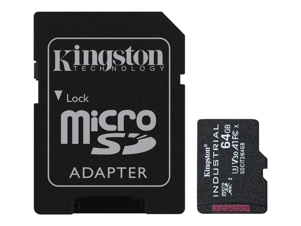 Kingston Industrial - Carte mémoire flash (adaptateur microSDXC vers SD inclus(e)) - 64 Go - A1 / Video Class V30 / UHS-I U3 / Class10 - microSDXC UHS-I