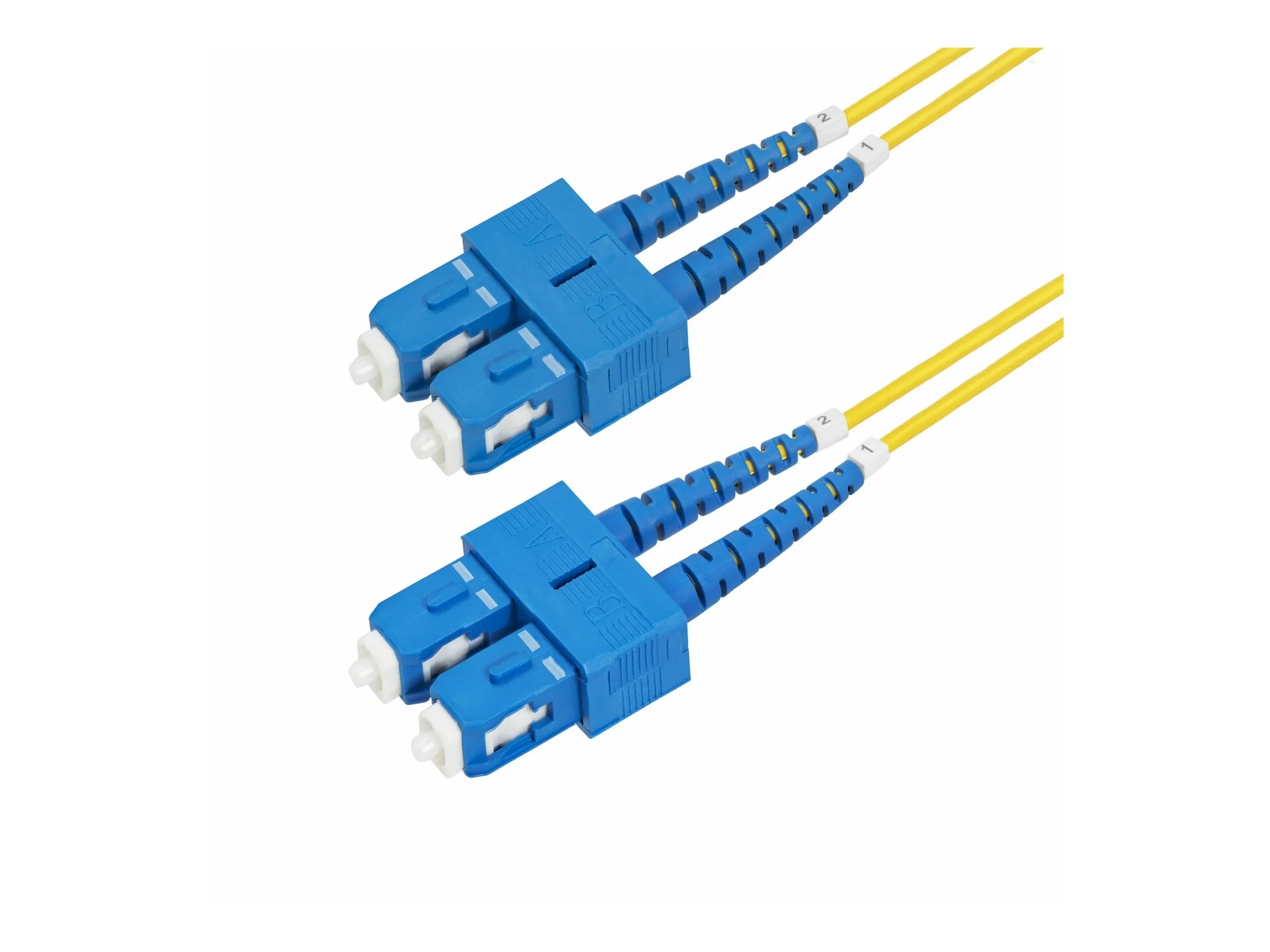 Des ferrules en céramique fabriquées avec précision assurent un alignement précis des fibres pour une perte d'insertion inférieure à 0.3 dB. Les extrémités de fibre SC à SC polies en contact ultra-physique (UPC) améliorent considérablement les caractéristiques de perte de retour par rapport aux anciennes techniques de polissage PC. Le cœur de fibre insensible à la courbure est entouré d'une couche de matériau à faible indice de réfraction. Ce matériau réduit la quantité de lumière qui peut s'échapper du câble à fibre en réfléchissant la lumière dans la fibre. Le cordon de raccordement à fibre OS2 est conçu pour une faible atténuation et des performances dépassant les normes de l'industrie ITU-T G652.D/G657.A1 et IEC60703-2-50 type B1.3/B6.a1.