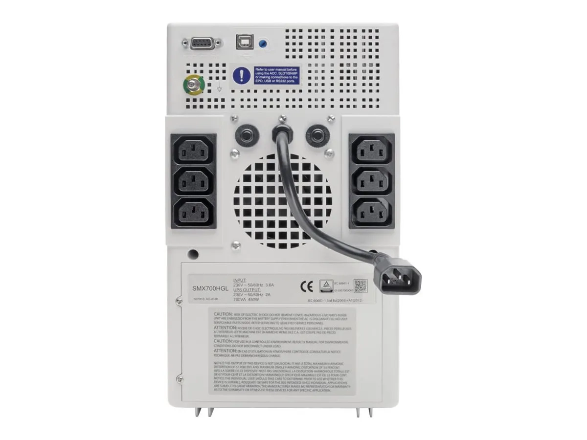L'onduleur Eaton Tripp Lite Series SmartPro Medical-Grade UPS est conçu pour assurer une protection fiable de l'alimentation des équipements médicaux et des applications critiques. Grâce à sa technologie de batterie au lithium, cet onduleur offre un temps de recharge de 3,6 heures et peut fournir jusqu'à 14,5 minutes d'autonomie à pleine charge, garantissant ainsi que les appareils essentiels restent opérationnels pendant les pannes. Son format mural et ses points de mise à la terre intégrés renforcent la sécurité et la commodité dans les établissements de santé. Doté de plusieurs connecteurs, dont un D-Sub à 9 broches et des options USB, cet onduleur facilite la gestion et l'intégration à divers systèmes. Il prend en charge une capacité de 700 VA et est équipé de plusieurs fonctions de protection telles que la suppression des surtensions, la correction des surtensions et la suppression du bruit. Avec une plage de température de fonctionnement de 0°C à 40°C et une tolérance à l'humidité allant jusqu'à 95%, il est adapté à divers environnements tout en répondant aux normes de conformité UL 60601-1 et RoHS.