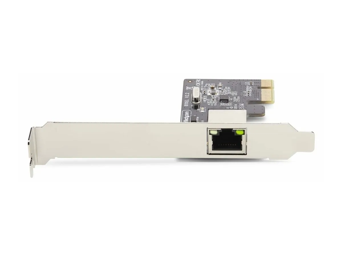 La carte réseau PCI Express comprend un support de profil standard préinstallé pour les ordinateurs de bureau et serveurs de taille standard, ainsi qu'un support bas profil pour la compatibilité avec les ordinateurs de petit format.