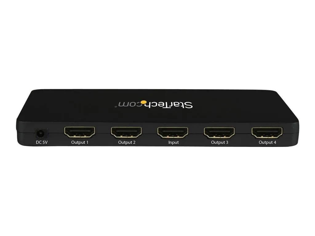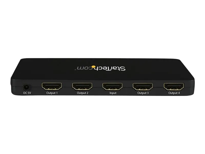 Le répartiteur HDMI 4K à 4 ports ST124HD4K vous permet de partager quatre vidéoprojecteurs ou écrans HDMI avec un périphérique source audio-vidéo HDMI, comme un ordinateur, un lecteur Blu-ray et un boîtier décodeur de télévisions par câble.