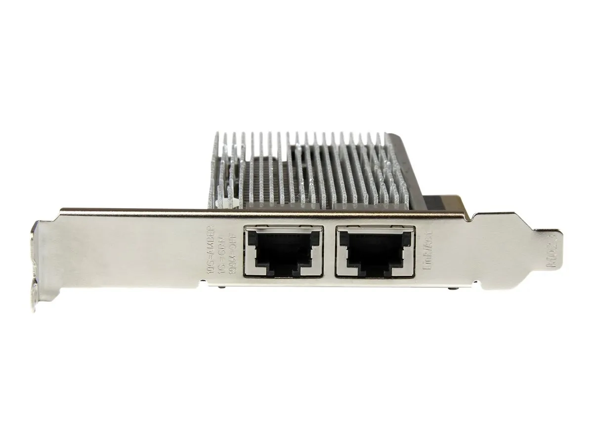 Conforme aux normes IEEE 802.3/u/ab, la carte réseau constitue un moyen efficace de mettre à niveau ou de remplacer vos ports réseau par deux ports RJ45 compatibles 100/1000/10G, et vous faire profiter de débits pouvant atteindre 10 Gb/s dans les deux sens (20 Gb/s en tout). Elle se branche dans un simple slot PCI Express à quatre voies (x4 ou plus).