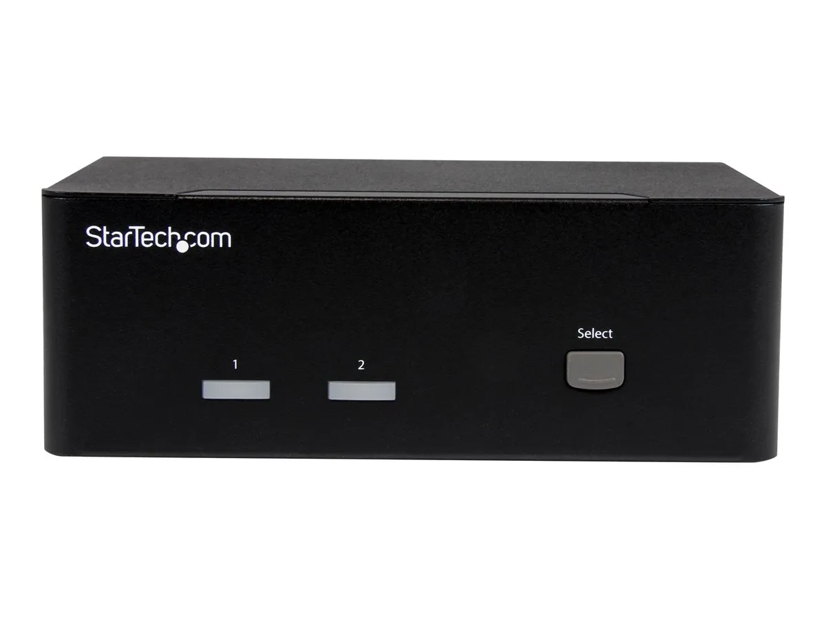 Ce commutateur KVM USB vous permet de brancher deux ordinateurs comportant chacun deux sorties VGA à un poste de travail à deux écrans. Vous pouvez basculer la station de travail entre les ordinateurs, ainsi que deux périphériques USB, des haut-parleurs 3,5 mm et un microphone. Optimisez votre productivité avec deux sorties vidéo Ce commutateur KVM, qui prend en charge deux sorties vidéos VGA et deux ordinateurs, poussera votre productivité au maximum. Non seulement vous accéderez à plusieurs ordinateurs, mais vous pourrez utiliser deux écrans VGA pour diffuser sur chacun d'entre eux du contenu indépendant afin d'augmenter votre productivité tout en profitant d'un fonctionnement multitâche. Le port VGA prend en charge des résolutions jusqu'à 1920 x 1200, pour obtenir une zone d'affichage maximum. Accès multi-système Ce commutateur KVM propose deux sorties vidéo, la prise en charge du clavier et de la souris, ainsi qu'un hub USB à 2 ports permettant d'ajouter deux périphériques de plus. C'est dire s'il est parfait pour accéder à deux systèmes distincts à partir du même poste de travail. Parce qu'il prend en charge votre poste de travail et deux périphériques supplémentaires, ce KVM est idéal pour le contrôle serveur, ce qui simplifie l'accès à de multiples systèmes informatiques. Utilisation pratique Ce commutateur KVM 2 ports garantit un fonctionnement sans effort grâce à la commande intuitive par raccourcis claviers. Cette solution simple mais complète pour passer d'un ordinateur connecté à l'autre s'utilise également en mode manuel grâce aux boutons d'accès facile situé sur le devant. Le modèle SV231DVGAU2A bénéficie de la garantie StarTech.com de 2 ans et de l'assistance technique à vie gratuite.