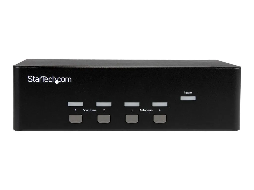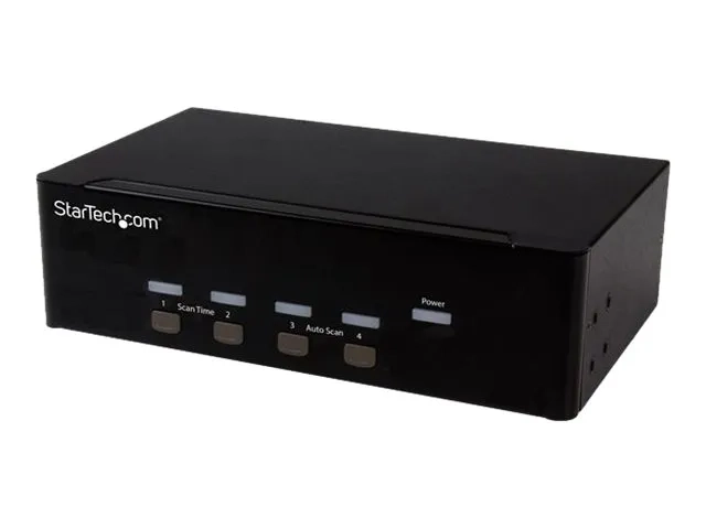 Ce commutateur KVM à 4 ports garantit un fonctionnement sans effort grâce à la commande intuitive par raccourcis claviers. Cette solution simple mais complète pour passer d'un ordinateur connecté à l'autre s'utilise également en mode manuel grâce aux boutons d'accès facile situé sur le devant.