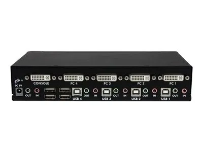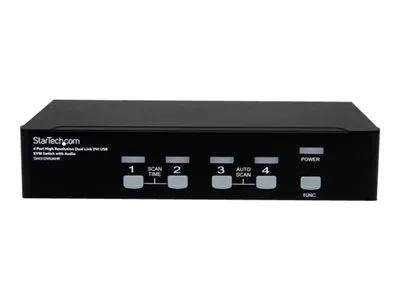Le commutateur KVM USB DVI Dual Link haute résolution à 4 ports avec audio, SV431DVIUAHR, offre un contrôle KVM simple, mais complet, permettant de contrôler jusqu'à 4 ordinateurs connectés directement, avec connexions de sortie DVI Dual Link, clavier et souris USB.
