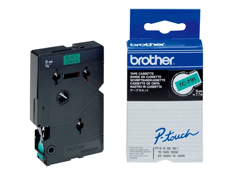 Brother TC791 - 9 mm x noir sur vert - ruban laminé - pour P-Touch PT-2000, PT-3000, PT-500, PT-5000, PT-8E