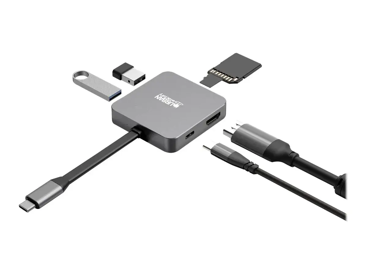 La station possède tous les ports fondamentaux dont vous avez besoin, 1 port USB 3.0 et 1 port USB 2.0 pour connecter votre souris, votre clavier et votre disque dur; 1 port vidéo afin de connecter votre moniteur externe en HDMI 4K (30Hz). Pour terminer, vous pourrez brancher vos cartes mémoire au format SD et MSD et, si votre ordinateur est alimenté en USB-C, vous pourrez directement brancher votre alimentation externe à la station pour recharger votre ordinateur (jusqu'à 100 watts).