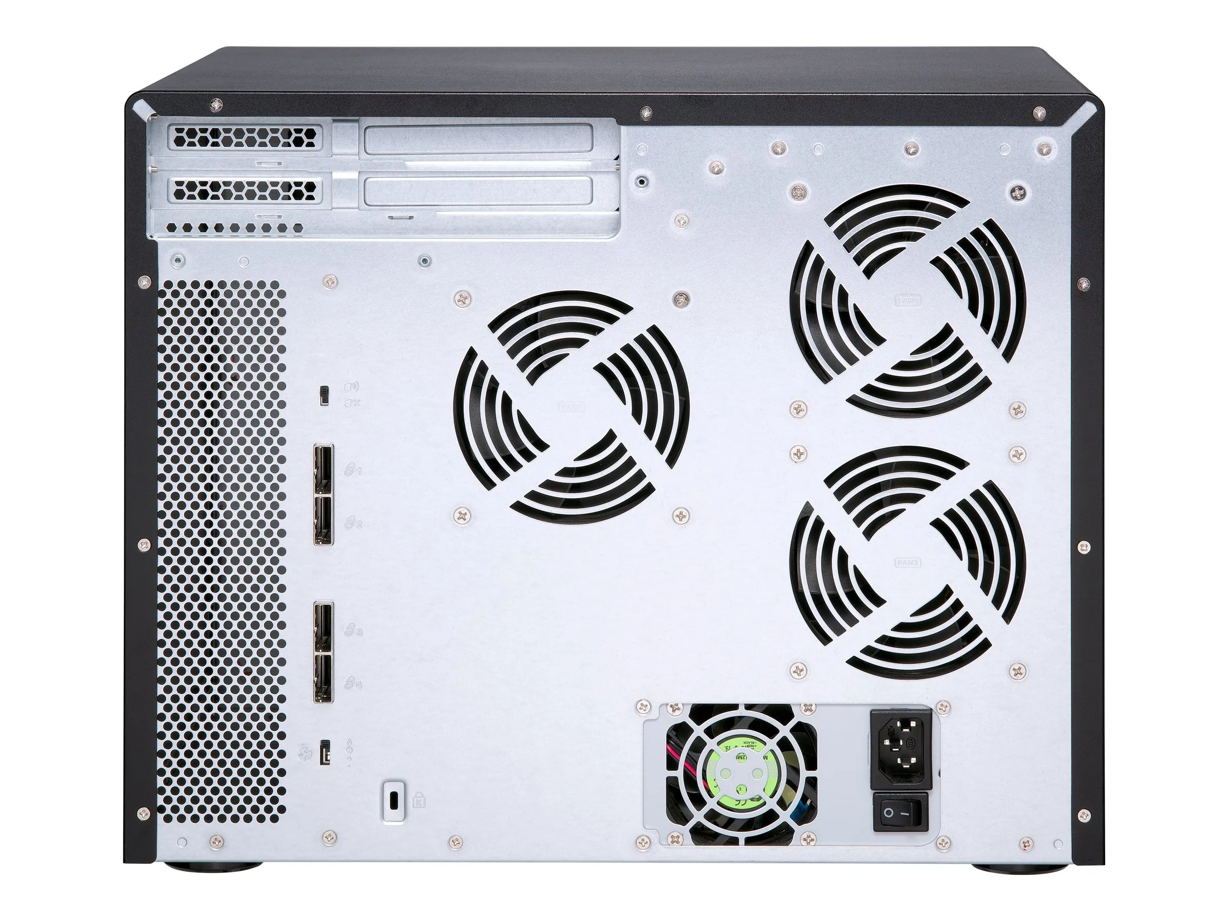 | Accessoires inclus | Clé, 48 x vis à tête plate (pour disque dur de 2,5"), 48 x vis à tête plate (pour disque dur de 3,5"), câble d'alimentation, Carte d'extension QNAP QXP SATA |