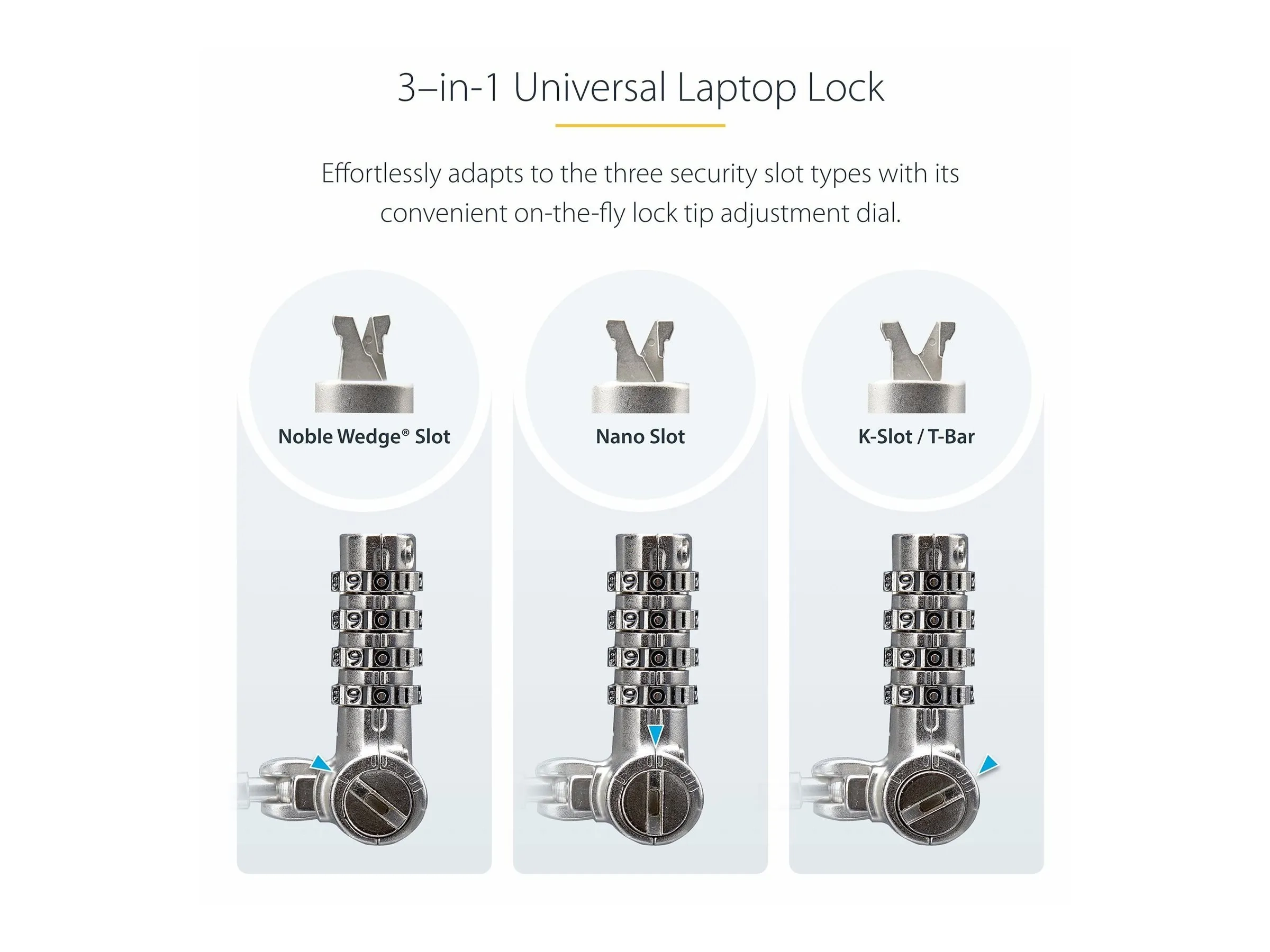 Sécurisez un ordinateur portable, une station d'accueil ou d'autres périphériques avec cet antivol de câble à combinaison sérialisée 3-en-1