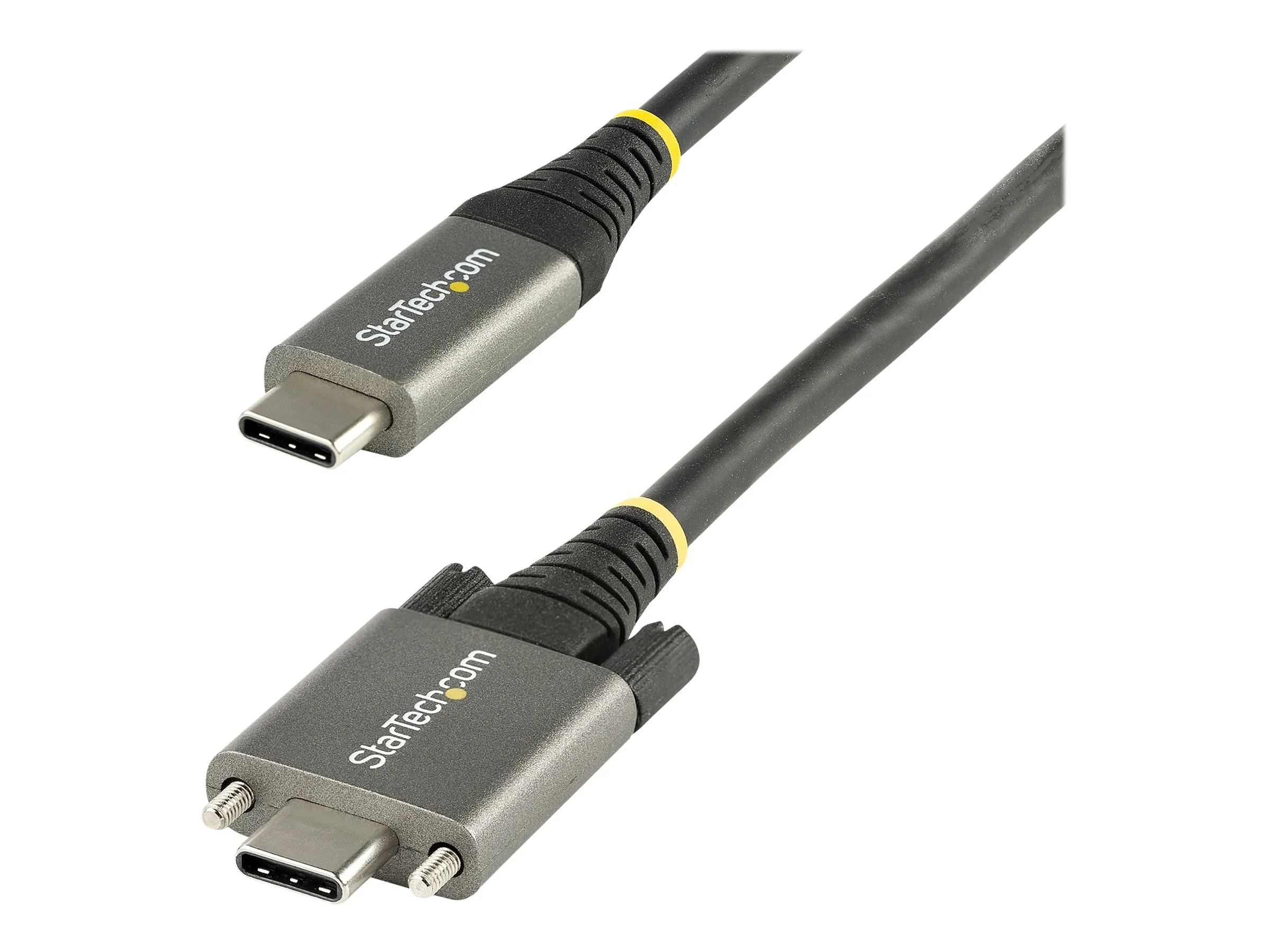 StarTech.com Câble USB C 10Gbps 1m à Verouillage par Vis Latérale - Câble USB 3.1/3.2 Gen 2 Type-C - 100W/5A Power Delivery, DP Alt Mode, Cordon USB-C à Double Vis de Fixation (USB31CCSLKV1M) - Câble USB - USB-C (M) droit/bloquant pour USB-C (M) droit - USB 3.2 Gen 2 / DisplayPort 1.4 /Thunderbolt 3 - 1 m - support 4K - gris, noir