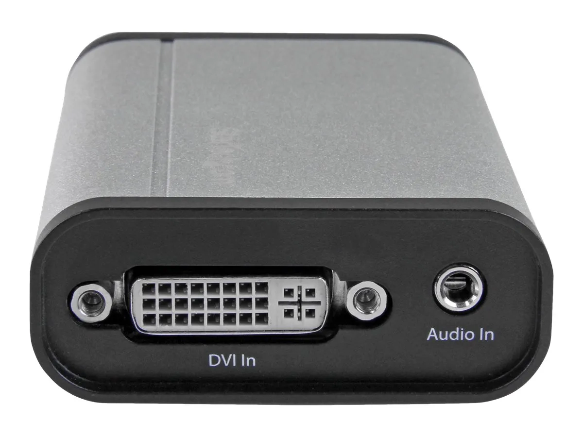 Ce boîtier d'acquisition vidèo DVI vers USB 3.0 enregistre des vidèos DVI haute rèsolution sur votre ordinateur. Avec son boîtier en aluminium, cet appareil solide est adaptè à une utilisation fixe ou mobile. Il est dotè d'une entrèe audio 3,5 mm pour les enregistrements audio et les commentaires en voix off et d'un port passthrough DVI qui permet de connecter un moniteur pour visionner la vidèo pendant son acquisition.