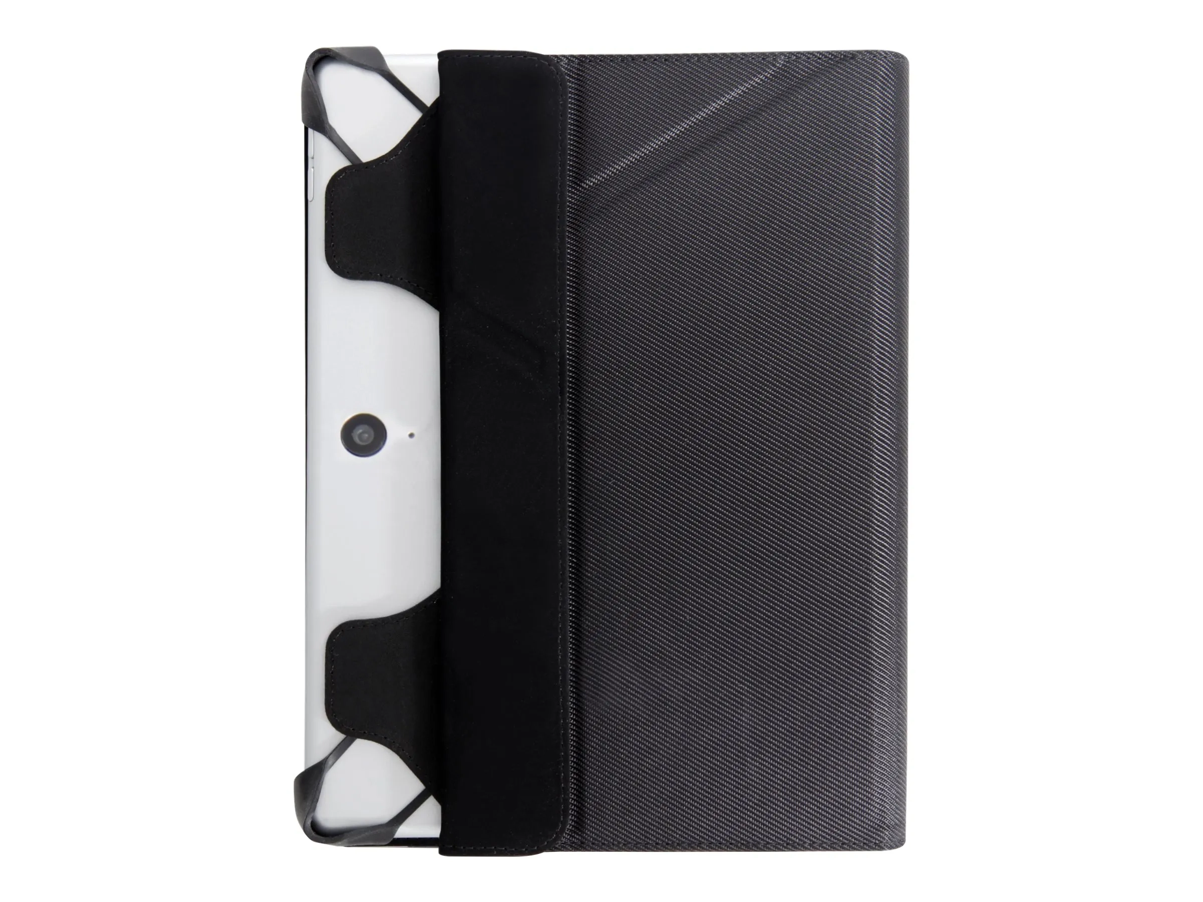 Le portfolio est doté d'un emplacement dédié pour un stylet / stylo, donne accès à tous les connecteurs et appareils photos de la tablette et se positionne en mode chevalet afin de visionner confortablement vos films et séries.