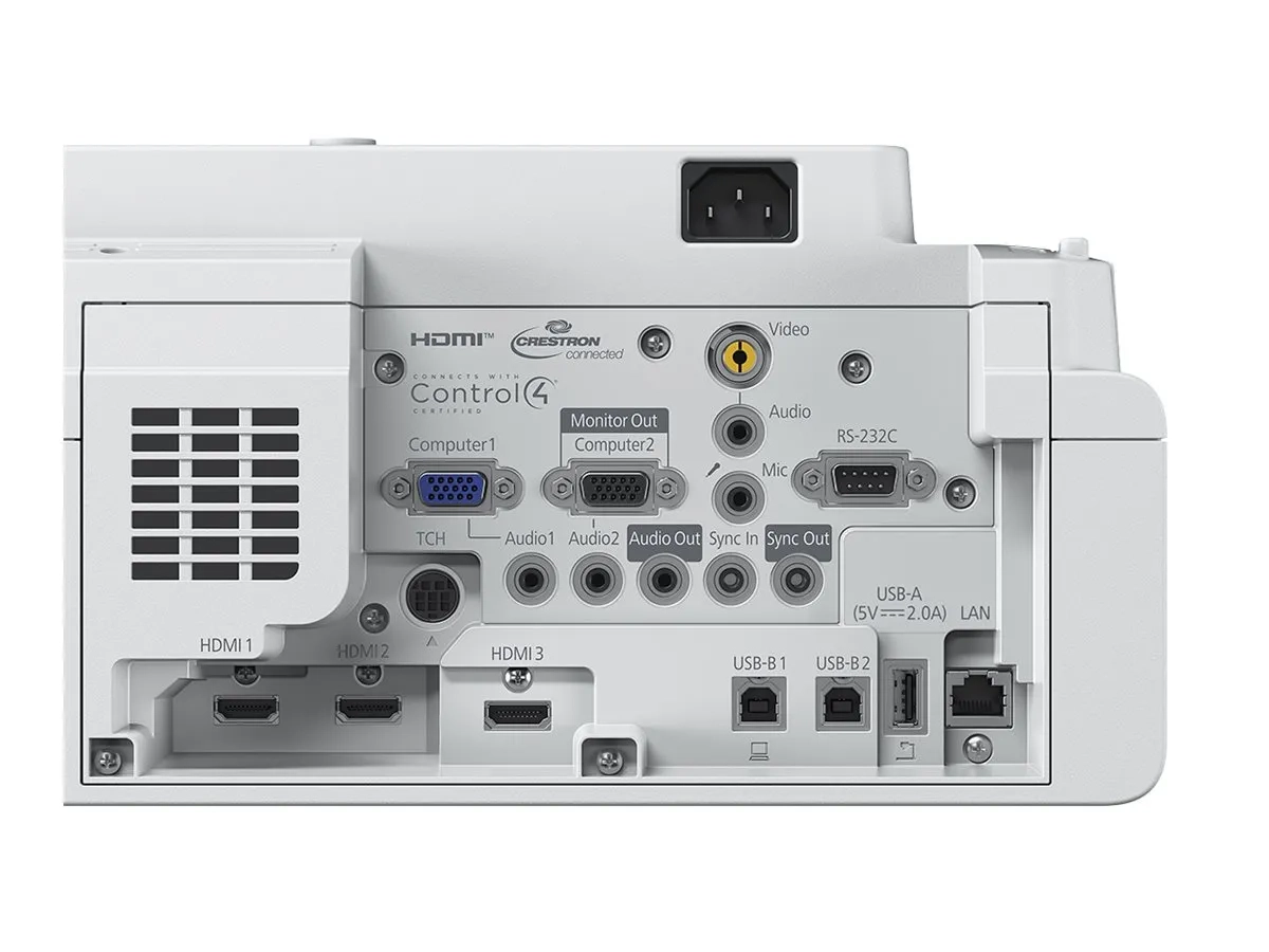 | Fonctions | Profil de couleur sRGB, tableau noir, EPSON Quick Corner, technologie 3 LCD EPSON, Split Screen, Crestron RoomView, AMX Device Discovery, Direct Power On, Direct Power Off, Mode dynamique, Digital Zoom, mise en marche automatique, Crestron Integrated Partner, marche/arrêt instantané, Control4 SDDP, compatible caméra de document, Presentation Mode, Extron IPLink certified, Cinema Mode, obturateur à cristaux liquides RVB, changement d'image, PC libre, PC interactif, mise en miroir de l'écran, contrôle du web, télécommande web, fonction de partage du tableau blanc |