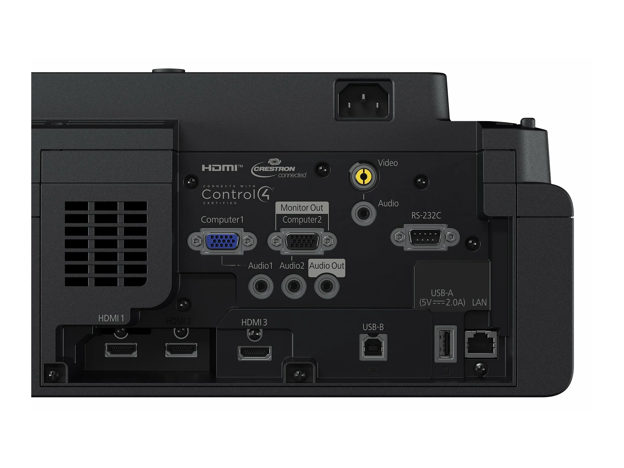| Interfaces | 2 x entrée VGA - 15 broches HD D-Sub (HD-15) ¦ 3 x entrée HDMI - HDMI de 19 broches de type A ¦ 2 x USB - USB de type A 4 broches ¦ 1 x entrée vidéo composite ¦ 3 x entrée de ligne audio - mini-phone stereo 3.5 mm ¦ 1 x sortie de ligne audio - mini-phone stereo 3.5 mm ¦ 1 x USB - USB 4 broches type B ¦ 1 x série RS-232C ¦ 1 x réseau - RJ-45 ¦ 1 x sortie VGA - 15 broches HD D-Sub (HD-15) |