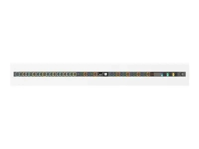Fonctions Montage vertical, extensible, surveillé, connecteur de verrouillage C13, connecteur de verrouillage C19, surveillance de circuit/de disjoncteur de courant, fonctionnalité en chaîne de marguerites, 6 x disjoncteurs magnétiques unipolaire de 16 A, écran LCD tactile, voyants lumineux, entrée de cordon d'alimentation en bas à l'avant, fiche anti-éclaboussures, phase alternative/circuits, panneau coloré, bouton de redémarrage matériel, bouton de réinitialisation IP