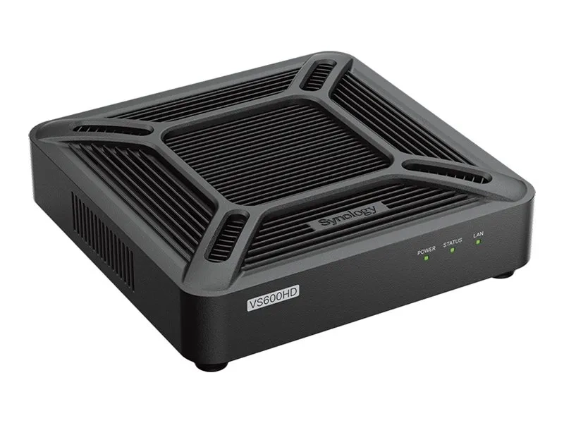 Le Synology Visual Station VS600HD est un NVR autonome puissant et polyvalent, conçu pour répondre aux besoins des systèmes de surveillance modernes. Il prend en charge un large éventail de formats de compression, notamment AMR, G.711, G.726, H.264, H.265 et PCM, garantissant ainsi la compatibilité avec un large éventail de sources audio et vidéo. Capable de gérer jusqu'à 50 canaux vidéo et de fournir des résolutions vidéo allant jusqu'à 3840 x 2160, le VS600HD est idéal pour les environnements nécessitant une surveillance et un enregistrement haute définition.