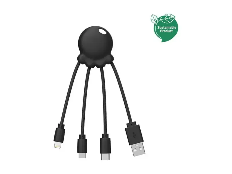 Son design compact s'adapte à divers cas d'utilisation, que ce soit à la maison, au bureau ou en déplacement. Doté d'un port USB Type-A et de trois connecteurs polyvalents sur le côté droit, l'Octopus est prêt à répondre aux exigences de la vie moderne tout en conservant sa durabilité et sa fonctionnalité. Connectez, rechargez et synchronisez vos appareils sans effort grâce à cette solution pratique.