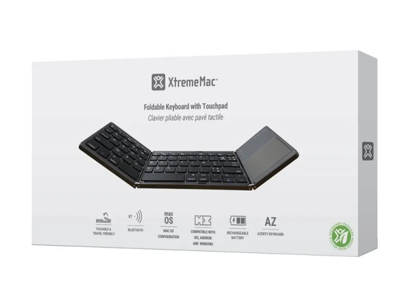 XtremeMac Travel - Clavier - pliable - avec pavé tactile - sans fil - Bluetooth 3.0 - QWERTY - US - gris sidéral - Pour la vente au détail - boîte